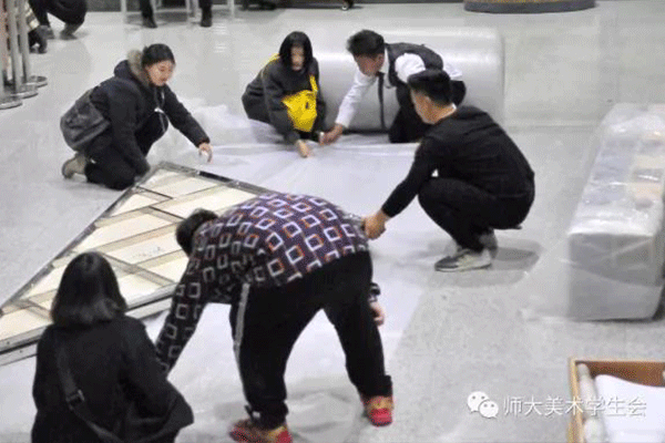 大家不怕苦、不怕累、团结在一起,拧好每一刻螺丝钉、包好每一块画布、没有一句怨言,充分展现自身服务意识,奉献精神;美院、画展因他们更辉煌。