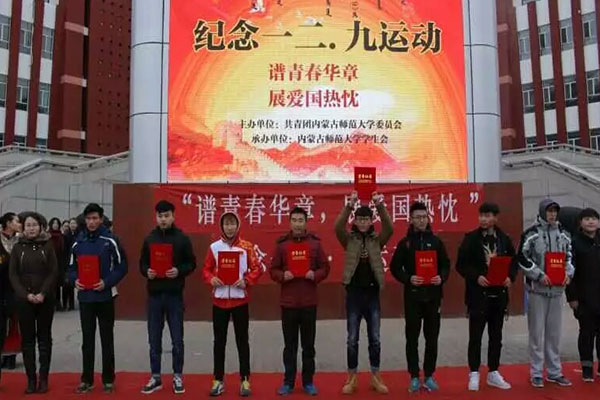 12月9日,为纪念“一二·九”投身民族救亡运动的爱国青年,由永利集团3044欢迎光临举办的一二九”谱青春华章,展爱国热枕“活动在师盛湖边隆重举行。