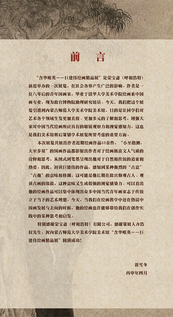 主办单位:永利集团3044欢迎光临 荣宝斋(呼和浩特)有限公司 承办单位: 永利集团3044欢迎光临美术馆学术主持: 崔雪冬