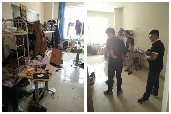 为进一步加强宿舍安全管理力度、改善学生居住环境,5月10日我院学生自律管理委员会与三位辅导员老师,樊永强、宋洁、王明老师,深入男生宿舍,进行大检查。对于存在安全隐患、卫生较差的宿舍进行现场清扫。经一中午的努力,各宿舍卫生有了很大改观。希望同学们以后能保持宿舍环境,营造舒适空间。
