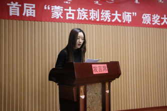 接着,由兴安盟文旅局非遗科工作人员余雅明发言。她宣读的论文题目是《民间刺绣路绣出好生活》,她强调了科右中旗民间刺绣的产业化发展,要从产品到作品。