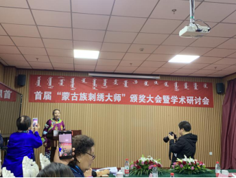 10月14日—16日,首届“蒙古族刺绣大师”颁奖大会暨学术研讨会在兴安盟科右中旗巴彦呼硕镇召开。会议地点位于图什业图赛马场酒店。本次大会由中国蒙古学学会与内蒙古蒙古族刺绣传承创新学会联合主办。我院2018级研究生:张悦、朱雨馨应邀参加此次学术会议。(见图1、2)