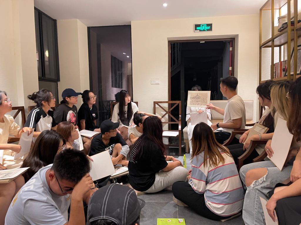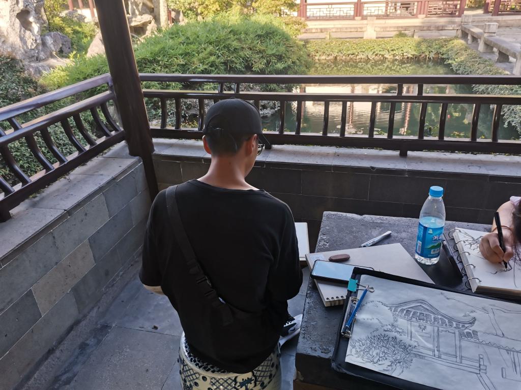 在苏州的三天主要是在园林内进行写生。首先是了解和对比内蒙古地区的建筑来理解苏州园林的特点,其次是通过特点来深入理解其中蕴含的文化,运用这些掌握的知识完成写生。通过一整天的学习、写生同学都会有完整、满意的作品。最后是刘老师会对每一位同学的写生作品进行点评,针对学生作品存在的问题进行讲解,同学们对自己的作品进行反思,继而进行修改。在三天的写生时间里同学们对于苏州园林和中国传统文化的理解更加透彻,在思想上有了很大的改变,绘画能力也有所提升。