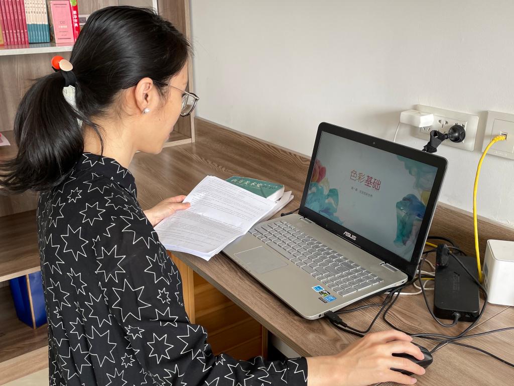 水彩画系:线上教学在理论,资源共享以及理论课方面有很大的优势,但是在写生课方面仍存在着一些问题。由于受到疫情影响,部分同学在线购买的画材在开学第一周未及时到达,稍稍影响到教学的过程。