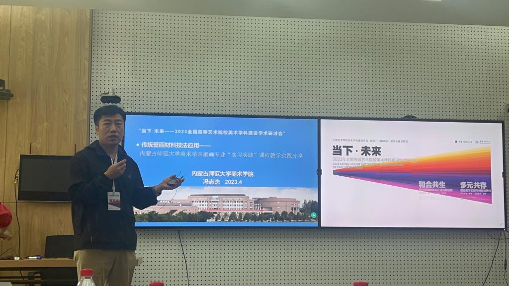 4月24日,由中国美术家协会主办,中国文联美术艺术中心、中国美术家协会壁画艺术委员会、云南艺术学院承办,昆明市博物馆协办的“2022中国壁画作品展”在昆明市博物馆开幕。展览同期举办了 “当下·未来——2023全国高等艺术院校美术学科建设学术研讨会”,我院副院长胡日查教授,壁画系李崇辉教授,壁画系主任冯志杰老师应邀参加会议,会上李崇辉教授、冯志杰老师做了主题发言并于专家们共同探讨美术学科壁画专业建设及课程研讨,分享了永利集团3044欢迎光临的教学情况。